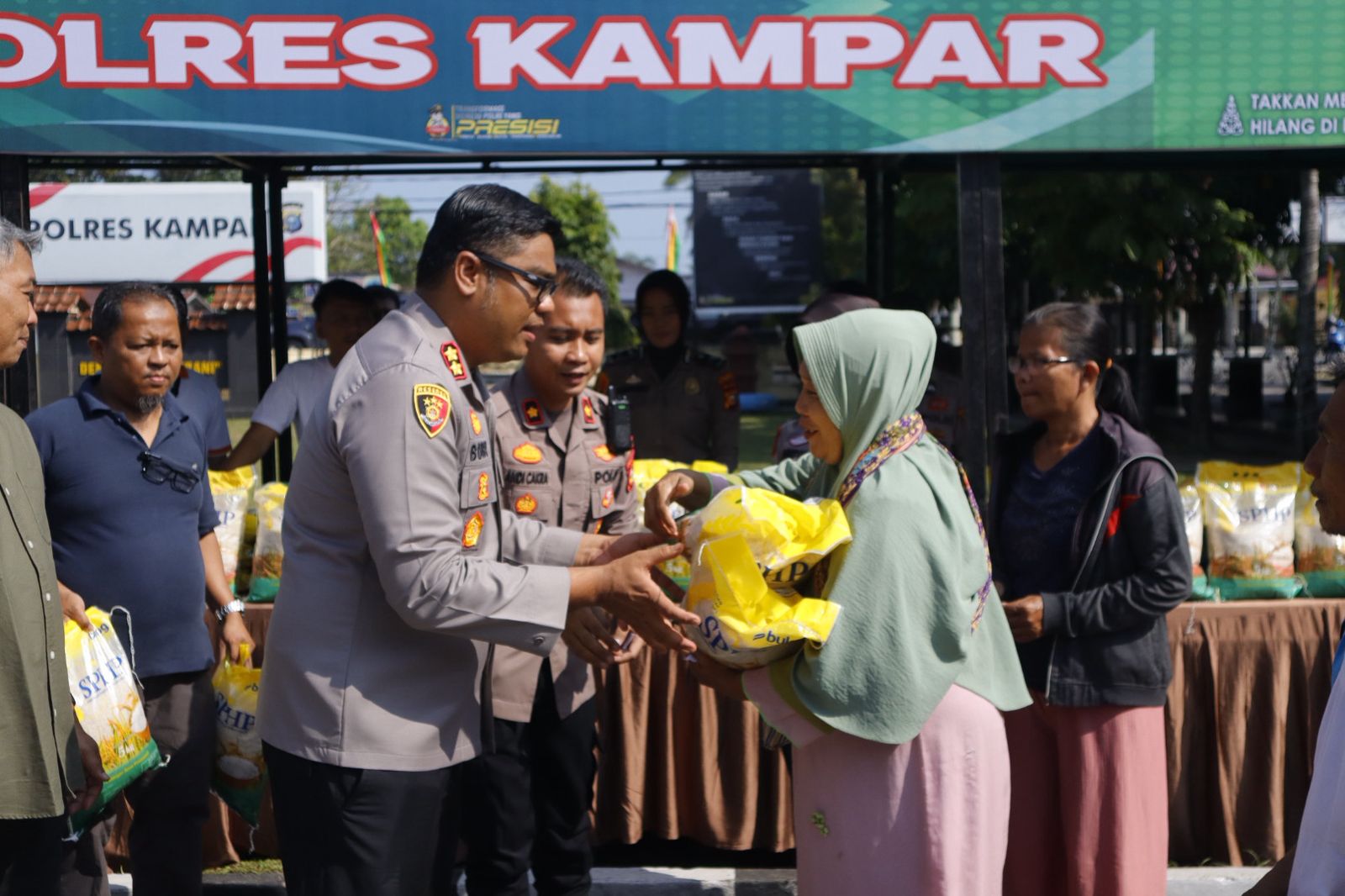Kapolres Kampar, AKBP Boby Putra Ramadhan, S., dalam sambutannya menjelaskan bahwa pasar murah ini dilaksanakan berdasarkan arahan Pemerintah Pusat untuk mendistribusikan beras cadangan pemerintah (CBP) atau beras Stabilisasi Pasokan dan Harga Pangan (SPHP) kepada masyarakat luas.