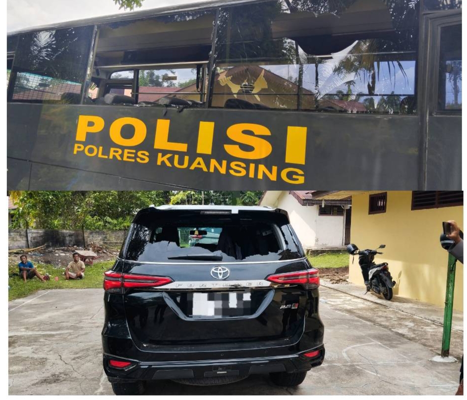 Dalam insiden tersebut, mobil dinas Kapolres Kuantan Singingi AKBP Raden Ricky Pratidiningrat, S.I.K., M.H., ikut menjadi sasaran amukan massa. Selain itu, mobil Kabag Ops Kompol Teguh Wiyono, mobil Sat Lantas Polres Kuansing, satu bus Polres Kuansing, dan satu unit sepeda motor turut dibakar oleh kelompok yang menolak penertiban.
