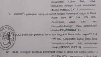 Keterangan foto : Surat putusan pengadilan negeri Indragiri hulu,