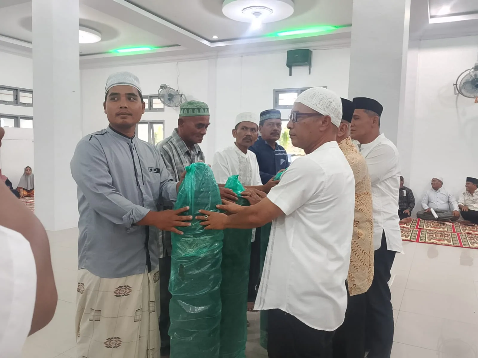 Kemudian dilanjutkan dengan pemberian santunan kepada anak yatim sebanyak 20 orang dan bantuan Baznas kepada pakir miskin 20 orang serta 4 unit ambal dan Tausyiah Agama yang dibawakan oleh Ustadz H. Rahmat Mujahid, M.Pd.