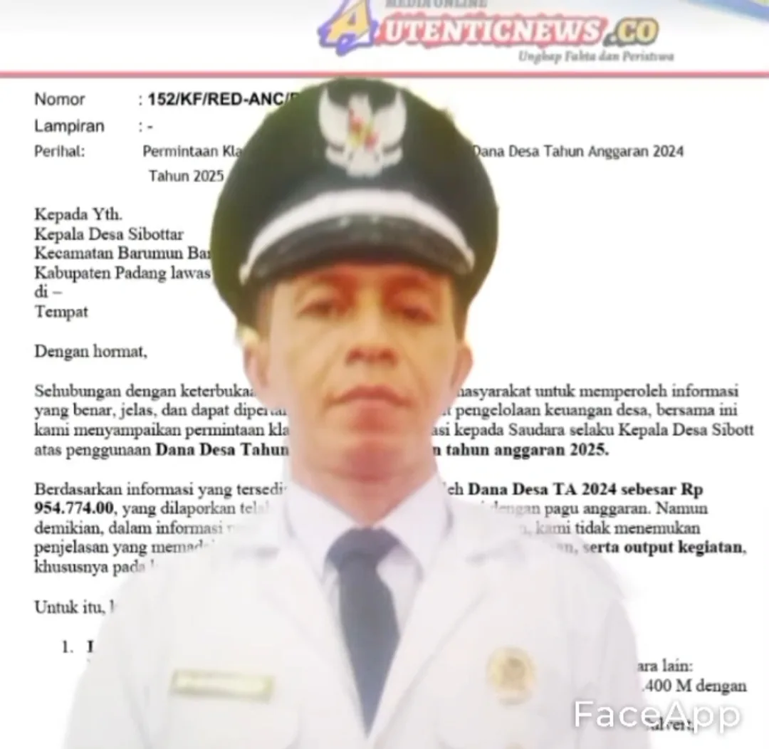 Tim pewarta telah melakukan upaya konfirmasi secara tertulis kepada Kepala Desa Sibottar, Bapak Joni Harahap, dengan meminta rincian anggaran DD yang diterima serta penggunaannya pada tahun 2024 dan 2025. Namun, hingga berita ini ditayangkan, pihak kepala desa belum memberikan klarifikasi apapun. Tim pewarta juga telah berusaha mengkonfirmasi hal ini kepada Sekretaris Camat Barumun Barat, Bapak Sahunan Tanjung, namun pihaknya juga belum memberikan tanggapan resmi. Kondisi ini semakin memperkuat dugaan bahwa pengelolaan dana sebesar ratusan juta rupiah tidak tepat sasaran.